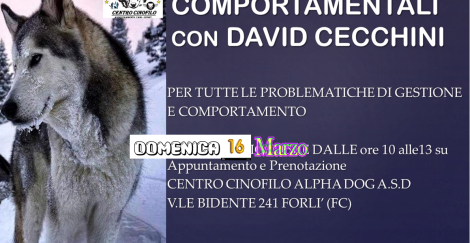DOMENICA 16 MARZO dalle 10 alle 13 tornano le Valutazioni Comportamentali con David Cecchini Addestratore Cinofilo Enci e Istruttore Responsabile […]